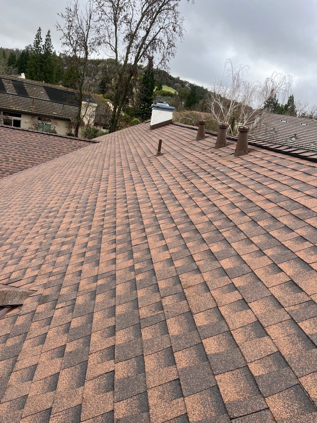 A high-performance synthetic underlayment was installed for improved water resistance and long-term durability. Topping it off, GAF HDZ RS shingles—known for their enhanced reflectivity and Title 24 compliance—were selected to improve energy efficiency while maintaining a classic look. The Hickory finish offers warm, dimensional tones that blend beautifully with the architectural style of the home and the surrounding Rocklin landscape.